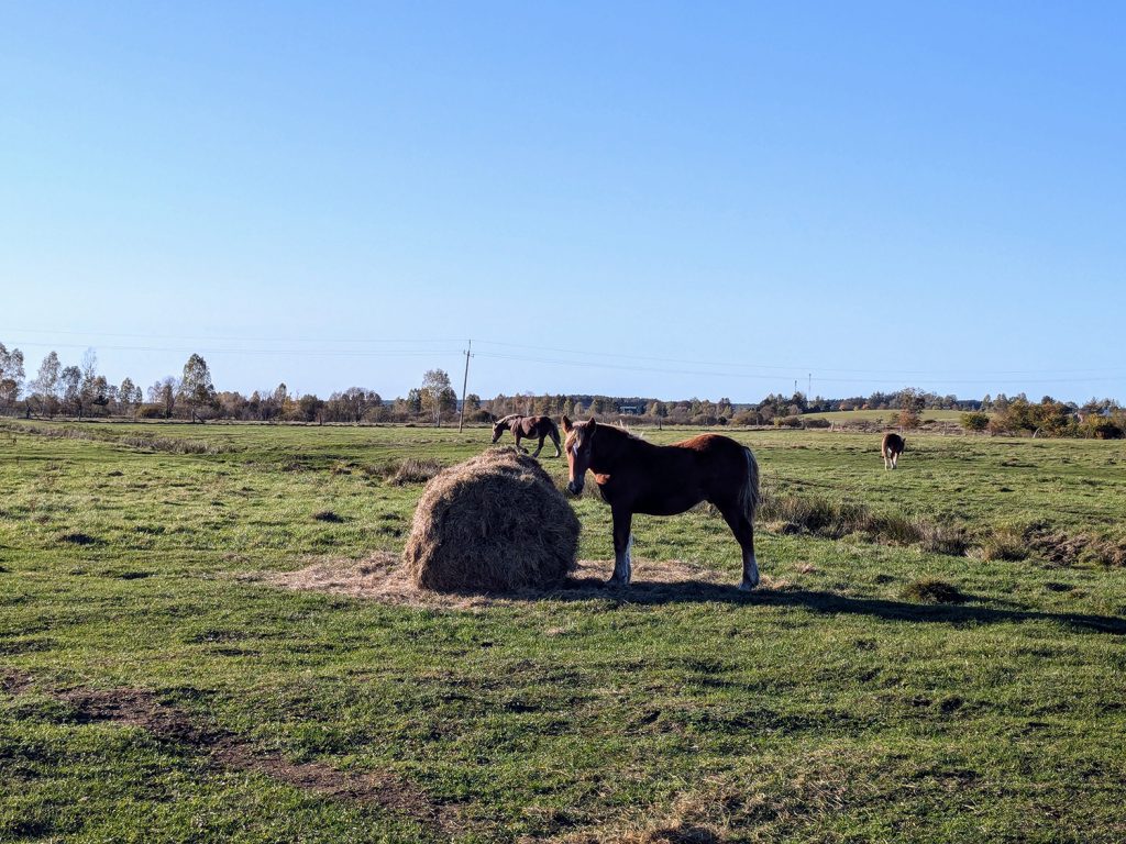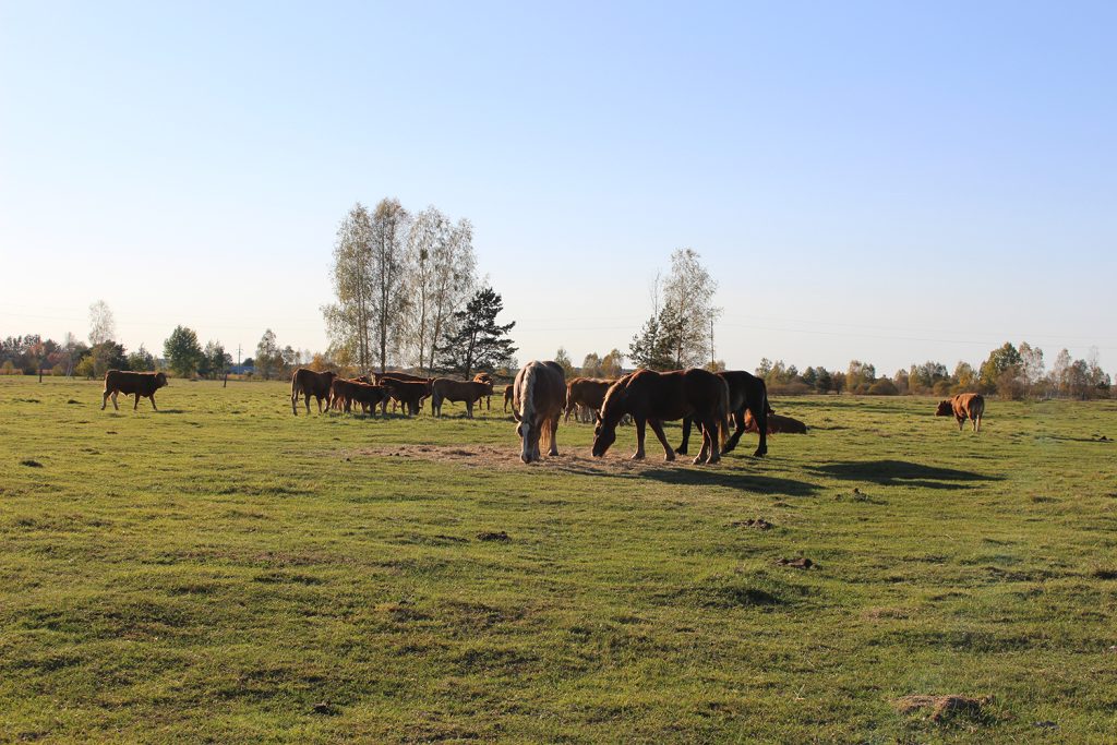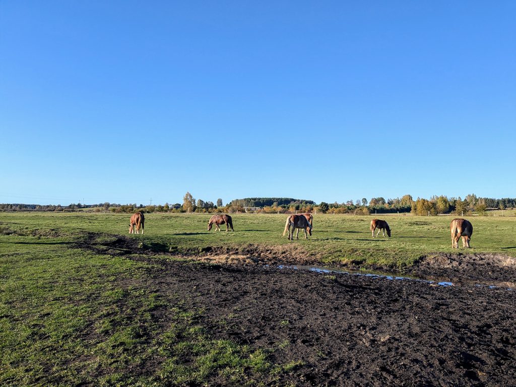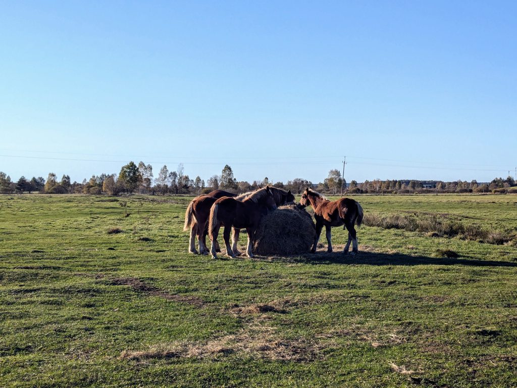 Gospodarstwo to wdraża mieszany system wypasu, w którym konie i krowy pasą się razem na tych samych pastwiskach. Ta zrównoważona praktyka zarządzania gruntami wykorzystuje różne zachowania pastwiskowe i potrzeby żywieniowe obu gatunków, aby stworzyć zrównoważony ekosystem, który przynosi korzyści zarówno zwierzętom, jak i użytkom zielonym.